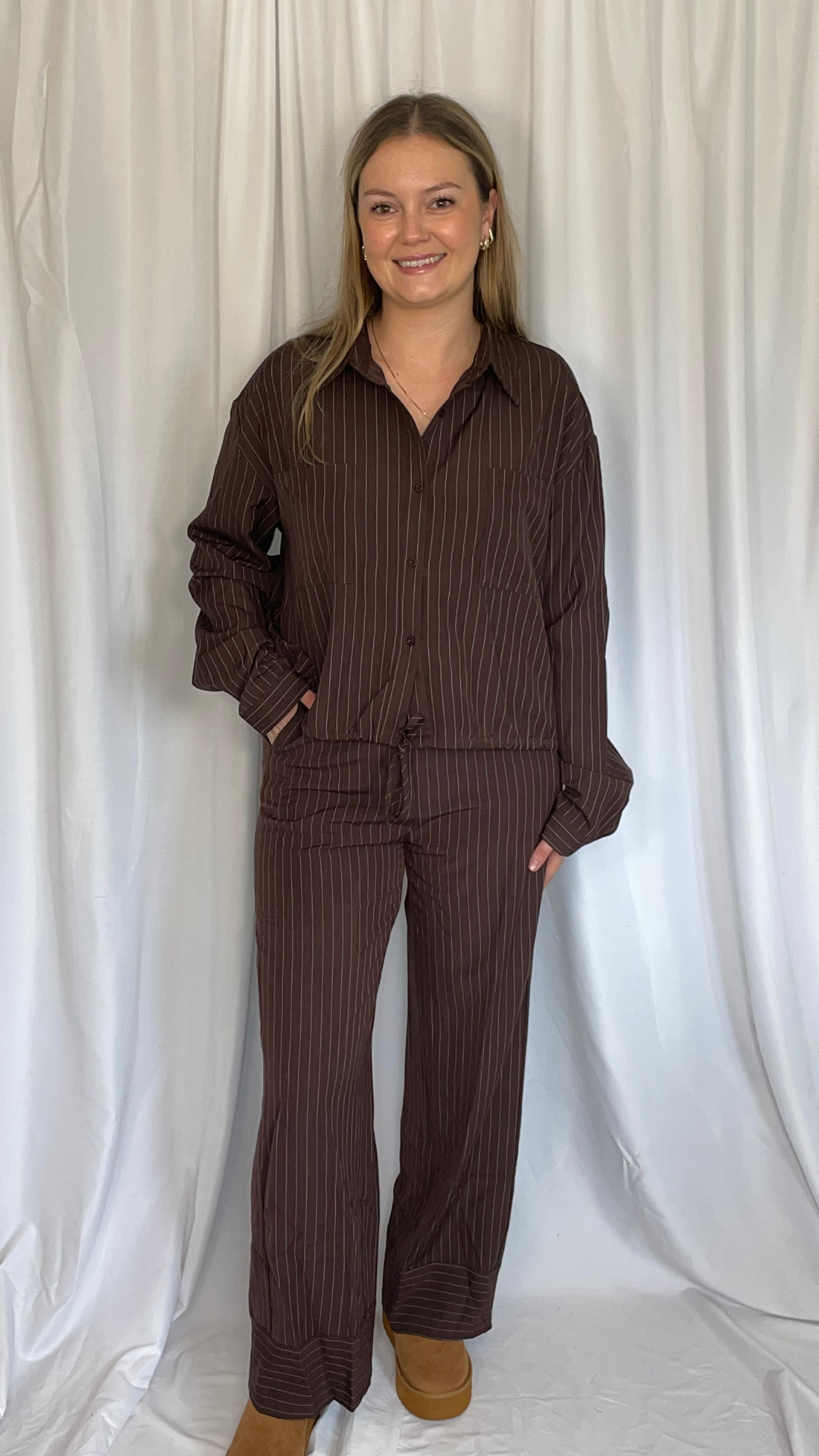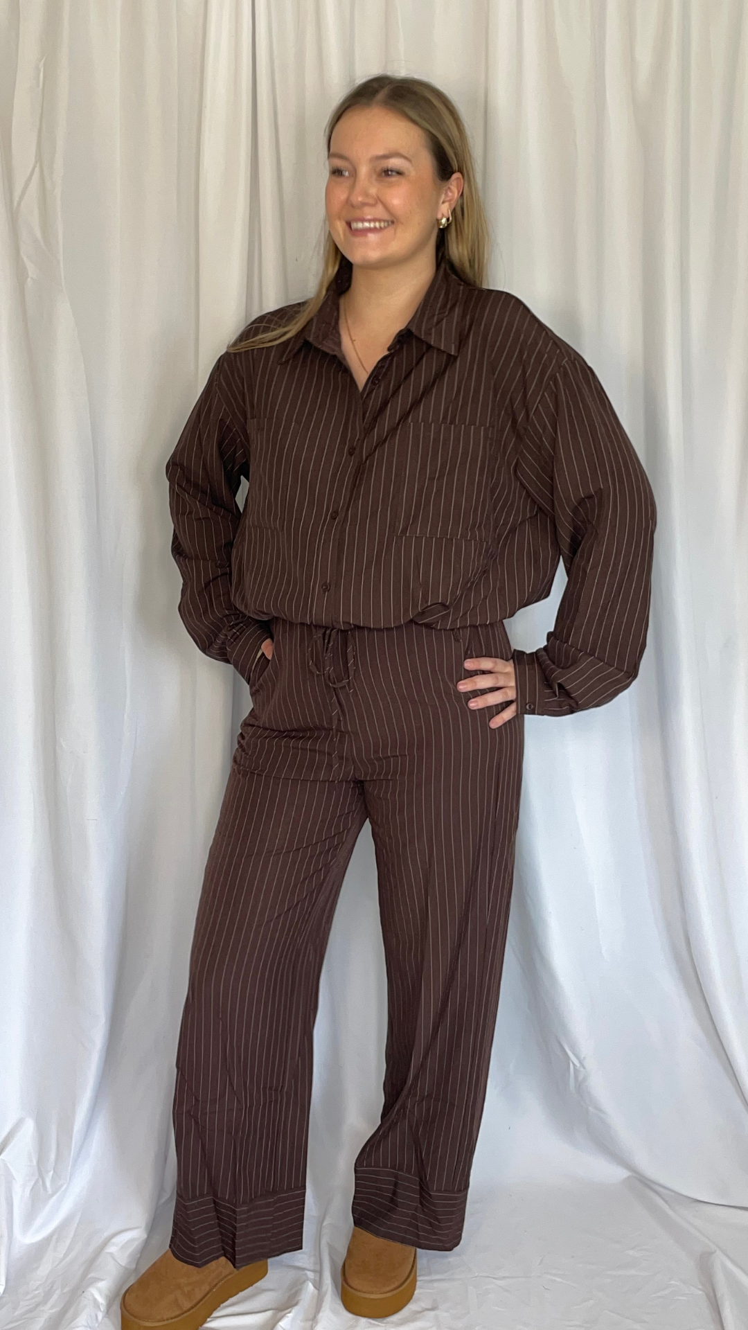 Model: 1m72, draagt top TU en broek M. Normale maat is L.
